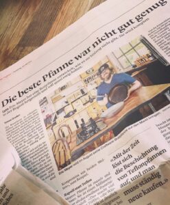 Mich hat es schon lange gestört, dass ich jedes Jahr eine neue Pfanne kaufen musste. Zumal diese sich ja auch schnell verformten, die Hitze nicht regelmässig verteilten und mit giftigem PTFE beschichtet waren.